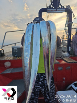 여수배광호 9월16일 갈치입항조황!!싸이즈는 굿..마릿수는 신력..ㅠ편차가 있는 날 입니다.바다는 오늘 다르고 낼 다르니. 오늘도 홧팅!!오늘 자리여유 7자리여유있습니다. 예약사이트http://beakwang.sunsang24.com/==== 여수 배광호 예약안내 =====예약문의 : 010-8829-2078오시는길 : 전라남도 여수시 돌산읍 신기길 32-11 네이버밴드 : https://band.us/band/63642259홈페이지 : http://beakwang.sunsang24.com/