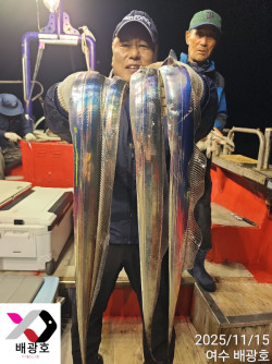 여수배광호 11월16일 갈치입항조황!!어제 오늘 갈치 엄청나오네요.오늘은 싸이즈는 더 굿입니다.^^미끼 잘 활용하신분들은 더~~굿입니다.^^초저녁부터 철수때까지 ~~월.화는 기상악화로 수요일부터 출조합니다.#예약전화01088292078 *저희 배광호는 조황사진을 만들어 찍지 않고 사무장님 편의상 쿨러를 모아서 찍지않습니다. ==== 여수 배광호 예약안내 =====예약문의 : 010-8829-2078오시는길 : 전라남도 여수시 돌산읍 신기길 32-11 네이버밴드 : https://band.us/band/63642259홈페이지 : http://beakwang.sunsang24.com/
